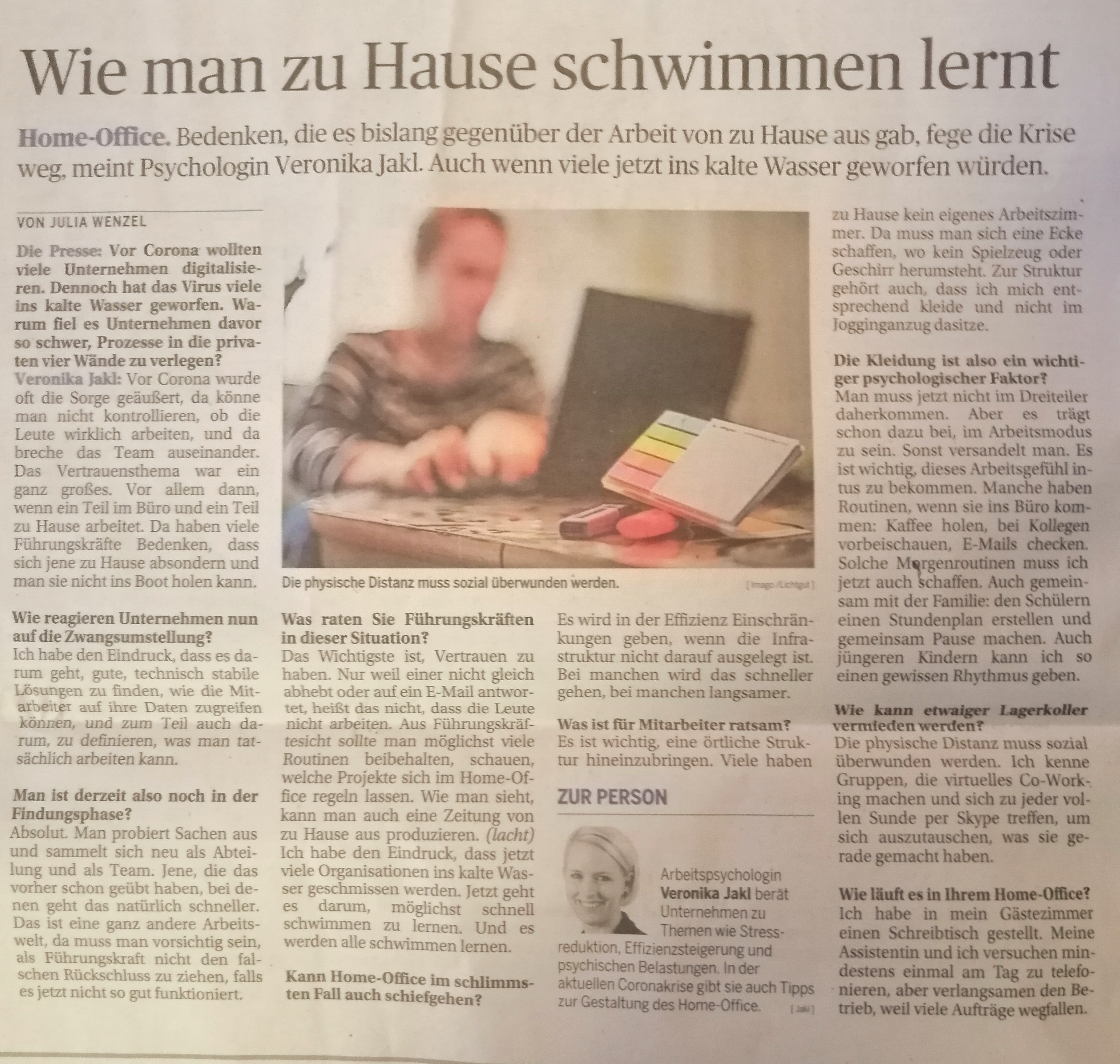 Ein Interview mit Veronika Jakl in der PRESSE (21.03.2020).